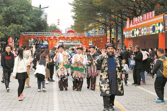 羊城晚报讯 记者黄松炜、王泽宝摄影报道:2月5日,2024佛山市禅城区文华迎春中心花市嘉年华拉开帷幕。花市年年有,岁岁不相同。今年的文华花市为期5天,直至大年初一凌晨方才收市,全市唯一;在传承传统年味的基础上,特设文化交融区,与贵州黎平携手呈现丰富多彩的文化新年礼,让市民游客在行花街、办年货的同时,感受浓浓的民俗味儿。 310个摊位 处处有亮点 春节将至,年味浓郁。文华公园熙熙攘攘,大红灯笼高挂,欢声笑语不止,洋溢着欢庆的气息。 据悉,今年的文华花市在视觉、布局、互动玩法和商家服务等方面都进行了创新升级,共设有310个摊位,除了传统的时花区、精品年货区、桃花小桔区和潮玩潮饮区之外,为满足市民兴趣,新增了粤食粤美区、文化交融区、特展区和品牌展示区。另外,今年还设置了30个公益摊位,多处互动打卡装置和潮玩拍照点,中心舞台更是精彩表演不间断,可谓日日有演出、处处有亮点。 其中,在文化交融区,禅城文化区域主要展示佛山十大传统文化及相关文创产品,黎平文化区域则将黔东南黎平的民俗文化、非遗展演、特色美食、农特产品等带到了花市现场。 当天上午约10时,来自贵州黎平的50名侗族巡游者融入盛大的花市巡游之中。他们身着特色服饰,手持侗族特有乐器,以优美的舞蹈和动听的音乐向市民游客展示侗族文化的魅力。与此同时,舞狮、功夫等传统表演也在巡游中轮番上演,展现了禅黎两地深厚的文化底蕴。 在傅女士的摊位里,蝴蝶兰等各色兰花琳琅满目。她说,自己从事室内设计多年,每逢客户乔迁,都会送上美好的兰花作为祝福,因此对兰花有着深厚的了解和喜爱。今年的摊位为价高者得,也希望能“多赚一点钱过年”。 好戏连台 夜晚灯如昼 “禅城文华花市作为佛山迎春花市的起源,是佛山人民过新年的集体记忆。”当天上午,在花市启动仪式上,禅城区委宣传部常务副部长、区文化广电旅游体育局局长刘芳表示。 据了解,今年文华花市期间,中心舞台处活动丰富,有大型舞台表演如“禅黎一家亲”迎春晚会、“粤海之夜·城市音悦听”等,以及高桩狮、汉服巡游等年俗表演,网红乐队演出,将持续为花市制造热度热点,打造大湾区最具节庆特色的民俗文化嘉年华,营造活力满满、幸福祥和的新春氛围。 值得一提的是,年廿八当晚,“禅黎一家亲”新春联欢晚会即将上演,并将黎平侗寨最为隆重的待客礼俗——长桌宴搬到文华花市。在中心舞台前,将摆上侗族和佛山的传统美食,邀请两地人民一起吃“合拢宴”,共庆新春。 晚会特别安排了黎平的侗族大歌、芦笙舞、瑶族武术,佛山的舞狮、武术、粤剧等特色表演,展现两地文化的碰撞和交流。同时,现场还将连线黄岗侗族大歌队和村BA西南赛区总冠军黎平尚重篮球队,进行两地互动。 此外,今年文华花市为全体档主提供优质服务,确保花市运行平稳有序。 在档位照明方面,今年档位照明由普通灯带升级为新灯源灯泡,照明瓦数是去年的3倍。在营业时间上,每晚延长至22:30。