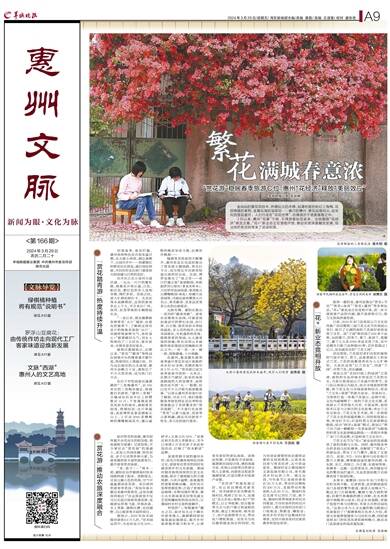 羊城晚报记者 李海婵 金灿灿的黄花风铃木、热情似火的木棉、如瀑布般的粉红三角梅、花团锦簇的紫荆、金黄似海的油菜花……春日的惠州,繁花自南向北、由东向西蔓延盛开。人们行走在“花花世界”,仿佛游历于绝美画卷之中。 3月以来,惠州“花事”不断,引得游客纷至沓来。当地围绕“花经济”做足文章,“花+”新业态正在竞相开放,推动农旅深度融合发展,给当地的老百姓带来了滚滚财源。 “赏花踏青游”热度持续升温 时值春季,春花烂漫。惠州各种特色花卉迎来盛开期,在大街小巷里、湖边垂柳下、公园市井中……姹紫嫣红的鲜花比比皆是,满目缤纷俏丽,市民纷纷走出家门感受春天的浪漫与自然的美好。 在市区江北小金河大道沿途,一丛丛一片片的簕杜鹃、格桑花开得正盛,白色、粉红色、紫红色的花儿竞相争艳、绚烂多彩。花海之间,游人忙着拍照打卡。尤其在周末高峰期时,这里的游客多达上千人,不乏来自广州、深圳、东莞等地的车辆排起长龙。 “一直以来,朋友圈都被各种赏花‘大片’刷屏,在朋友的推荐下,了解到这里有连片的格桑花海很‘出片’,也能呼吸新鲜空气,放松身心!”趁着晴好天气,刘女士特地约了三五好友,驱车前来,尽情享受美好春光。 据相关数据统计,近期以来,“赏花”“踏青”等热词在网络平台的搜索量不断升高,热度同比上涨超3倍。作为远近闻名的山水丽城,惠州生态魅力十足,涌现出了不少大型花海,成为热门打卡点。 在位于仲恺高新区潼湖镇的“三角梅瀑布”,近100米长的三角梅花墙边,挤满数百名游客,“惠州三角梅”关键词在抖音平台上获赞数近10万;下角菱湖是黄花风铃木的海洋,满树黄花绽放,傍湖而居,出片率超高;此前博罗县泰美镇象头山上,上百亩2000多棵桃树的鹰嘴桃园花开,漫山遍野的桃花争奇斗艳,仿佛世外桃源…… 随着赏花热度的不断攀升,惠州各县区也适时推出了赏花游主题线路、赏花打卡点,成为周边市民游客短途出游的好去处。比如,博罗县推出了“春之花——春日烂漫之旅”旅游路线,串联起罗浮山景区(黄花风铃木)、万亩罗浮追绿绿道、泰美象头山鹰嘴桃园(桃花)、柏塘万亩茶园等,可满足游客攀登大川名山、赏花踏青、采茶品茗等多元化的出游需求。 无独有偶。惠阳区推出一系列的“踏青攻略”。游客在亚维浓生态园,可感受宛如童话中的梦幻乐园,向日葵、百日菊、黄花风铃木等陆续盛放,步入花的海洋;在佳禾园景区,生机盎然的花海、郁郁葱葱的果园,让人感受春的浪漫;秋长谷里山水画般的客家围屋民宿掩映在青山之中,一花一草一木一窗一景,原始静谧,十分清幽。 在惠州,像是簕杜鹃等春季盛开常见有成片栽植的花木有40余种,花期多集中在3月-5月。“赏花游已成为春季旅游市场的一大亮点。近期天气晴好,前来咨询旅游路线的人明显增多,虽然现在还不到‘五一’假期,但已有不少人开始为旅游做准备。”记者从惠州多家旅行社了解到,早在2月,他们便根据春季景色特征及应季特色资源推出了花样繁多的“赏花线路”。不少旅行社还将“赏花”元素与温泉、美食等元素相融,满足市民游客个性化、多元化的旅行需求。 “赏花游”推动农旅深度融合 面对赏花的流量,惠州如何提升由花而生的附加值,将流量转为留量?记者发现,不少景区在“赏花游”的基础上,还加入田园采摘、特色农业、亲子互动等多种元素,为游客提供更丰富的旅游项目,提升游客赏花体验。 “来,茄子……”周末一到,惠阳区良井镇黄洞村佳禾园就热闹了起来。放眼望去,尽是五颜六色的花海,空气中氤氲着淡淡花香。来自深圳的游客李茗说:“我每年春天都会来惠州看看花,这里也离深圳很近!”在这里游客不仅可以沉浸式体验花漾美景,还能游玩草地飞盘、旱地冰壶、水上桨板、插秧比赛、定向越野、后山制茶等丰富的项目。 据统计,2023年佳禾园接待游客6.3万人次。“佳禾园运营中,生态农业占比50%,研学+文旅占比50%。”该景区相关负责人李源表示,至今已承接2万余名孩子来此参加活动,打响了“佳禾耕读”品牌。 旅游资源丰富的惠州乡村,还充分挖掘各地特色民俗文化,使游客在赏花的同时也感受到乡村文化底蕴。墨园村拥有独特深厚的历史文化底蕴,留存了惠城最大的古建筑群,与花开遍野、春意盎然的景象相映成趣。该村充分发挥资源优势,打造了营地里品咖啡、乡野间围炉煮茶、乘小火车看油菜花田等充满文艺范和趣味性的活动项目,让墨园村乡村文旅热度飙升。 仲恺的“三角梅瀑布”爆火之后,面对每天过千辆车次游客涌入,潼湖镇持续加强基础设施建设,提升乡村旅游服务能力和水平,让游客有更好的游玩体验。该地还挖掘、开发敦伦书室展馆、潼湖源田园综合体、琥珀南嵩书室、花果山民宿等自然景点和人文景观,向游客呈现更多潼湖美景,打造完整乡村旅游产业链。 “花经济”热闹发展之时,也让农民增收有新花样。佳禾园景区优先聘请当地村民,吸纳了近30人,还通过“龙头企业+基地+农户”的模式,以订单收购、综合服务等方式与农户建立利益联结机制,通过土地流转、稻米加工、农产品销售等方式,带动农户增收致富。在优先为农民提供就业岗位的同时,也为有创业需要的农民提供必要的支持和帮助,让更多农民参与赏花经济,从中获益更多。墨园村成立墨园强村文旅发展有限公司,