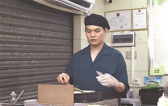 文/羊城晚报记者 孙唯 实习生 张佳慧 图/受访者提供 金黄的饼皮裹上酥脆的薄脆和爽口的生菜,再淋上秘制的酱料,撒上芝麻,小小一张煎饼果子,在五星级酒店的各式精美菜肴中脱颖而出,吸引了26岁的关志橄的目光。他从没想过竟然能在五星级酒店的餐桌上看见这个朴素的身影,震惊之余,他嗅到一个商机。煎饼果子广泛的受众群体和强大的市场潜力是最牢固的保障,要不要创业试试?这个想法逐渐在关志橄心中生根发芽。他辞去了五星级酒店的工作,在广州热闹拥挤的街边,摆起了属于他的煎饼摊。 从五星级酒店到街边摆摊 五险一金齐全,每月八天休假,这样的生活是现在许多人追求的完美工作,而已在五星级酒店有一份稳定工作的关志橄,却不顾家人的反对决定辞职,只身创业。“我坚信利益与风险并存,如果想要获得更高的收入,就必须勇于承担相应的高风险。每天固定上班的生活虽然安逸,但我更清楚,长久待在舒适圈内,进步空间会变得有限,而我想要不断超越,选择自己的路。”关志橄表示。 创业初期,面对着不少的质疑和挑战,关志橄将它们一一克服,也迎来了全新的自己。“一开始,最大的挑战就是自己,挑战自我很难。以前我是一个胆怯、不太爱说话的人。而摆摊需要面对各样的人群和各类突发的状况,这种事情放在之前我想都不敢想。经过不断地锻炼和突破,那些曾经不敢做的事情,我都逐个击破了。现在回想起来,这确实是锻炼自己的一个不错的方式。”关志橄笑道,“一开始我父母也是反对的,但他们看到了我的坚持,也看到了我的改变,最终他们从反对转为支持。” 坚定了创业决心后,关志橄迅速付诸行动。在街头摆摊的日子里,他结识了一位超市老板,二人理念相合,决定共同在学校附近开设一家煎饼果子店。每天从上午十点半忙碌至晚上十一点,关志橄凭借自己的手艺和热情,逐渐赢得了顾客的口碑和信任。然而,创业之路并非一帆风顺。疫情期间,虽然遭遇了困难,但关志橄一直没有放弃希望。“我设法在别人的店铺里租了个小摊位。那段时间很辛苦,也没有别人帮忙,都是我自己一个人熬过来的。”关志橄回忆道。 小小煎饼果子内藏乾坤 尽管煎饼果子在市场上拥有广泛的受众,但随之而来的竞争也愈发激烈。想要在一众煎饼果子中崭露头角,就必须在方方面面做到极致。 提到自家煎饼果子的特别之处,关志橄显得格外自信:“首先在食材上,我的把控是非常严格的。生菜是每天现洗现切,为了保证它的新鲜度;而薄脆可以说是煎饼果子的灵魂,我尝试过很多品牌,最终选了一家口感和酥脆度最好的;在制作饼皮的低筋面粉中,我们会加入一点食盐来增加韧度;秘制的酱料里还会添加一些酒,在制作过程中,通过酒的蒸发带出香味,这也是烹饪中去除异味的一种专业手段。此外,我们还保证不添加任何的增稠剂和不必要的添加剂,利用材料的原汁原味来制作美食,这是我的烹饪信条。”作为一名曾在五星级酒店工作的专业厨师,关志橄对于食材的高要求、对大众口味的精确把控,成为赢得食客青睐的强大武器。 煎饼果子虽小,但内藏乾坤。想把它经营好也需要不断创新升级,迎合市场需求。“目前我们已经有三种饼皮和二十多种小料、小菜,尽量为顾客提供更多可能性。我们每年也会定期添加新的菜品,根据顾客的反馈随时进行增减。我经常会在大众点评上看小店的评论,顾客的满意度是我最看重的。”关志橄说。 独自创业的道路上,关志橄体验了无数的艰辛与孤独。他几乎没有休息和节假日,全身心投入到煎饼果子的制作与店铺的运营中。正是这份坚持与努力,让他品尝到了苦涩后的甘甜。“有一年的中秋节,有一个比较熟悉的客人给我送了一盒月饼,我当时非常感动,毕竟不在家乡,还能品尝到代表团圆的月饼。” 回顾创业初期,关志橄的生活条件非常艰苦。他只能租住在没有空调、窗户的小屋里,忍受着酷暑和严寒。然而,他并没有因此而放弃。经过几年的打拼,关志橄有了一定的积蓄,也换到了环境相对较好的房子。“现在回想起来都觉得自己挺厉害的,能在那样的环境中熬过来。”关志橄感叹道。 让青年在创新创业的路上发光 广东这片富饶的土地上孕育着丰富的饮食文化,广东人对美食的热爱与追求更是远近闻名。在这样的背景下,关志橄的烹饪之路也深受其影响,不断在传承与创新中寻求平衡。“我之前在酒店工作,很多广东师傅都是做粤菜和点心,他们的观念就是,在保留传统味道的基础上,不断创新口味和做法。他们对烹饪和美食的那份坚持和热忱也一直感染着我。”关志橄说。 近年来,在广东省的大力扶持下,青年创业氛围日益浓厚。作为青年创业者的一员,关志橄深切感受到了政策带来的便利与支持。他表示:“广东省政府为个体经营者提供了宽松的经商环境,不仅认真聆听创业者的诉求,还通过一系列政策措施,如提供创业扶持经费、建设创业孵化器等,为青年创业者提供了全方位的支持和帮助。”依靠这样的便利背景,他鼓励更多有梦想的年轻人走出舒适圈,勇敢创业,追逐自己的梦想。 展望未来,关志橄说,他将继续努力创新,不断提升煎饼果子的品质,为消费者带来更好的美食体验。同时,他也希望广东能够继续加大对青年创业的支持力度,为更多创业者提供广阔的舞台和发展空间。
