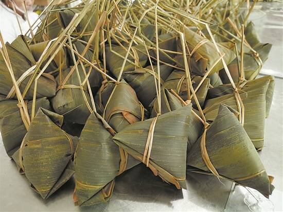 羊城晚报讯 记者丘锐妮摄影报道:端午将至,应节美食粽子在梅州各地“飘香”,其中,用传统技艺制作的灰水粽作为“传统客家味道”之一,深受当地群众喜爱,它色泽金黄、软糯清香,从五月中下旬至今持续热销。 在位于梅州市大埔县的大埔小吃文化城,厨师和工作人员正在赶制粽子。“我们从4月底开始销售粽子,近半个月销量节节攀升,现在每天大概制作1万只粽子,其中灰水粽占了七成。”大埔小吃文化城相关负责人李世沛说。 灰水粽,因用草木灰水浸泡糯米制作粽子而得名,因其食材中有碱水,故又名碱水粽。端午时节,地处山区的客家人常用布惊树烧成的草木灰制作灰水粽。 “这些布惊树灰加水煮沸后,用纱布过滤,滤出来的就是澄清的灰水,也叫碱水。”厨师罗俊其告诉记者,光是过滤这一步骤就要半个小时,其间不能搅拌,否则灰水会变得浑浊。 得到了澄清的灰水后,将洗净的糯米放入其中浸泡12个小时,然后将“穿上黄衣”的糯米沥干、包入干净的粽叶中,再用清水煮数小时,软糯可口的灰水粽便完成了。 剥开一个刚出锅的灰水粽,色泽金黄、晶莹剔透、散发阵阵清香,此时搭配客家人最传统的吃法——蘸白糖,则软糯清甜萦绕舌尖,回味无穷。“对我们来说,碱水粽是端午节的一种印象和记忆,每年都会买。”顾客丘先生说。 除了广受顾客欢迎的原味灰水粽,今年商家也将灰水粽与其他馅料相结合,推出了新口味。“我们有红豆灰水粽、蛋黄莲蓉灰水粽、灰水肉粽等口味,年轻人还是比较喜欢的,也有一些企业定制新口味的灰水粽。”李世沛说。