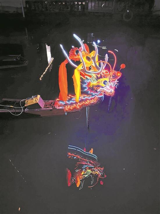 策划/统筹 谢红 文/羊城晚报记者 杨苑莹 图/羊城晚报记者 梁正杰 (部分图片由容宣提供) “不龙舟,无端午。”没有龙舟的端午,就像没有西瓜的夏天,没滋没味。而广东龙舟是出了名的刺激,一些网友戏称:“东北龙舟陪屈原,普通龙舟纪念屈原,只有广东龙舟在拯救屈原。” 而作为全世界“跑”得最快的龙舟队——乐从龙舟队,正是从“中国龙舟之乡”佛山顺德的小河道里走出来的。实际上,顺德龙舟不仅有竞速,还有比美。顺德龙舟分“游龙”和“赛龙”两种,“游龙”装饰美观,重在游弋,“赛龙”则重在竞渡争先。两种龙船景造就了顺德河面上两种截然不同的景观:东边的河涌上龙舟队伍正冲刺鼓劲,西边的河道里划手们却在戏水狂欢。 千百年来,顺德“以船为车, 以楫为马”,在斗转星移间,当地人化代步工具为竞渡休闲运动,并逐步提炼为“团结合作, 奋勇拼搏, 一往无前”的精神力量。毫无疑问,龙舟是佛山的珍宝,更是顺德的珍宝。 作为顺德十个镇街之一的容桂街道,其龙舟文化历史悠久、氛围浓厚,但要称得上“镇”街之宝,非“夜龙汇游”莫属。 每逢农历初二,在顺德区容桂街道南区社区,数十艘传统龙舟汇聚于此,船身装上锣鼓、罗伞、彩灯等物,变身成为“夜光龙舟”。更特别的是,伴随音乐鼓点,船手们上下跃动“摁”动船身,其动感程度堪比“蹦迪”,因此也被戏称为“广东人专属DISCO”。 本期佛山“‘镇’街之宝”系列报道,羊城晚报记者将实地带领读者感受容桂夜龙汇游的魅力,了解背后“名为热爱”的故事。 从一盏灯泡到“赛博朋克”夜光龙舟 在《顺德县志》中曾记载:“赛事通常在五月初一开始,形式有两种:一为‘趁景’,又名‘出游’,一为‘斗标’,又名‘竞渡’,前者侧重表演技巧,龙船大者长达十丈八丈,可坐七八十人,出动时安上木雕漆彩的龙头龙尾,插彩旗罗伞,并各有铜锣和大鼓,按锣鼓节拍划动……” 在文献中提到的“趁景”即是各村龙舟巡游,探亲访友。去亲戚朋友家走一转人都得是打扮得美美的,龙舟自然也少不了。 色彩艳丽的罗伞、绣工一流的彩旗、庄严威武的龙头、龙鳞辉映的龙尾等构成了缤纷的彩龙,逐渐演变成当下的“彩龙巡游”“彩龙竞美”活动。 一般来说,“趁景”“招景”都在白天举行,人们在吃了龙船饭后便会“回龙”,返回家中。但随着经济社会的不断变迁,大众的夜生活逐渐丰富起来,晚上也会选择到处走走。 容桂南山进士庙负责人陆生龙今年已75岁,每年都负责统筹南区夜龙活动,是居民心中的龙舟方面的“民间专家”。他从3岁开始下龙舟,从小见证本土龙舟的变迁。“我记得大概我5岁的时候已经有夜龙,但那时候不是正式的表演,而是大家走访隔壁兄弟村,大家靠着对河道的熟悉,晚上也敢大胆扒龙舟。” “在我的记忆里,桂洲十三坊市最早有夜龙的。那个时候全部用的是灯泡,在船上放置大量电池以维持发光。船上的装饰品像是罗伞、龙头龙尾都只是用纱布捆着一个铁框,并在里面放几盏灯泡。”80后龙舟雕刻传承人杨敬和回忆起曾参与过的两次夜龙活动,他表示因为很特别,所以至今都印象深刻。 “今年是第8年了,夜龙汇游在2017年开始举行。”陆生龙介绍道,南区始创夜龙汇游,场面很是热闹,兄弟坊社的龙舟都盛装出席。逐渐地,夜龙的装饰越发时尚新潮,在青年人的参与下,传统规整的龙舟完成“时尚改造”,南区夜龙汇游也因此成为远近闻名、大型的夜间龙舟活动,每年到南区转一圈已经成为各坊社不用言说的默契。 现场气氛堪比过年,热闹程度惊呆广西小伙 烟花、炮仗、浪花、舞狮、粤曲、雨水……桨声灯影里,来自容桂各个坊社的10艘龙舟在欢笑声中前行。 6月7日,“岭南潮 品顺德”2024“顺德欢乐龙舟”文化节、2024容桂端午龙舟季之“龙祥端午 潮游南区”2024年容桂南区第八届夜龙汇游活动在容桂街道龙华大涌南区段欢乐上演。 在活动开始前,顺德文广旅体局联动全区10个镇街在端午节期间举行端午龙舟系列活动,领导嘉宾为10个镇街颁发“顺德欢乐龙舟”旗帜。 锣鼓喧天、浪花飞溅、龙舟斗艳,一艘艘满载巧思的龙舟穿过桥底来到观众面前。“噢!噢!噢!”划手们站在船头船尾起哄,欢乐地“摁”动船体,还有大胆小伙手持烟花棒,一时璀璨烂漫映照在每个人的笑脸上。 据了解,今年南区在LED灯光夜龙巡游的基础上加入“大头佛+醒狮”传统文化、夜光龙等元素展示,还特别邀请老龙“出山”与年轻龙一起游一转。此外,龙舟龙狮队伍还在船上闪亮登场,将氛围进一步推向高潮。不仅如此,新潮的水上桨板紧随其后,展示着顺德容桂人民的传承与创新。 记者在现场发现,几乎每一艇龙舟上都有小孩和青年参与。“我们一家三代都热爱龙舟,三个人年年都参与夜龙巡游。”南区社区居民陆永昌表示,自己在父亲的影响下,6岁左右开始登上龙舟,而儿子在妈妈的肚子里便开始看龙舟,会跑会跳就跟着陆永昌游龙。“现在我的儿子也很热爱龙舟活动,每年都会跟着我们去扒。” “从来没见过这么热闹的龙舟活动,超级嗨!”从广西过来顺德旅游的卢先生和曹小姐连连感叹,“因为我们那边没有晚上划龙舟的,所以这次是专程过来看。现场氛围很好,热闹程度堪比过年。” 而在一旁,“新顺德人”韩先生牵着孩子细数河面上的龙舟。“虽然我来容桂十几年了,但我还是头一次到现场感受夜龙。