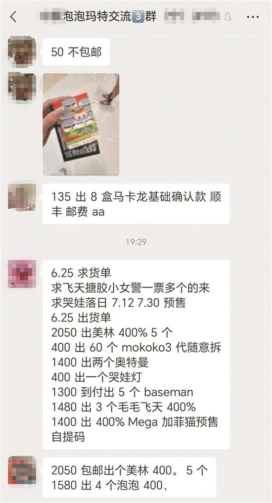 泡泡玛特交流群内不乏各种收货、出货信息(群聊截图) |