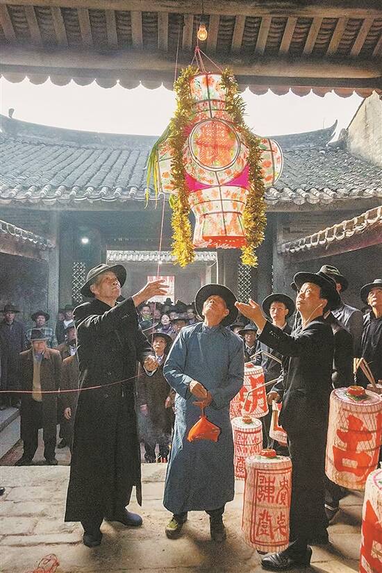 湖镇围“上灯”仪式隆重,反映出胡氏后人崇宗敬祖、慎终追远之心 林志华 摄 |
