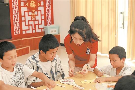 成为“科学家”,合作动手制作月球表面模型;化身“小侦探”,在剧本世界里探寻校园霸凌的真相;变身“手艺人”,在乐器模型白胚上进行手绘……大学生“小老师”们在乡村教学一线,给孩子们带来了一场场别开生面的特色课程,把科普、传统文化、趣味运动等带进课堂。