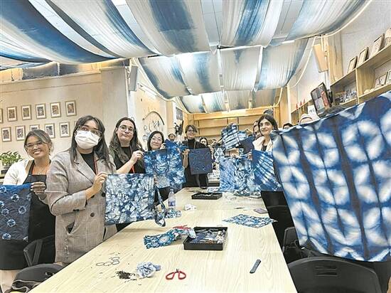 华南师范大学第二十期香港新教师(非华语)内地学习团体验扎染 图源:华南师范大学 |