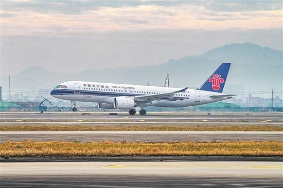 一架南航C919国产大飞机在广州白云国际机场起飞 新华社发 |
