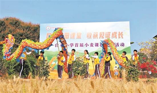 羊城晚报讯 日前,珠海市斗门区白蕉镇白石小学西校区耕读园里热闹非凡。舞龙翻飞、山歌响起……孩子们的朝气与活力尽显。随着节目演出,白石小学首届小麦课程展示活动正式开启。 活动以“风吹麦田课堂 收获见证成长”为主题,旨在让师生深入了解小麦种植、收获的全过程,感受劳动艰辛与丰收喜悦,体验科技农业以及劳动教育与多学科融合,为以“耕读教育”为核心文化的白石小学注入新内涵。 斗门区教育局党工委委员,教育研究中心主任尧国军表示,希望白石小学能够以此为契机,进一步挖掘和整合教育资源,创新活动形式和内容,将小麦课程展示打造成具有白石特色的品牌活动,让更多同学受益其中。 现场还有老式打禾机的体验教学。在老师的指导下,孩子们纷纷排队体验,用力脚踏转动轴轮,让麦粒脱落,尽管辛苦但却洋溢着劳动的喜悦。大家对“谁知盘中餐,粒粒皆辛苦”这句诗,有了更深的体会。另一边的展示课上,小麦知识被融进了语文、数学、英语、音乐、绘画等课程里。 据了解,白石小学种植的冬小麦选用的是华南农业大学实验室培育的优质冬小麦品种——华糯一号。该品种属于糯小麦,具有生长期短,糯性强等特性,颗粒饱满,口感好、有嚼劲,且含糖量低。 除了小麦,白石小学西校区3.5亩的耕读园,还种有甘蔗、蕉芋等作物,均由学生利用劳动课或课余时间照料。据白石小学校长李杨介绍,除了小麦课程展示活动以外,学校长年设有开耕、夏耘、丰收等特色活动,旨在教孩子们认识农作物,学习传统农业与现代化科技相融合的理念,进一步体验劳动的艰辛与丰收喜悦,懂得粮食的来之不易,不断传承传统耕读文化。 (文/图 杨雪薇 董睿)