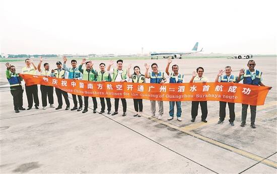 羊城晚报讯 记者詹淑真报道:3月21日22时02分,中国南方航空CZ8137航班平稳降落在泗水朱安达国际机场,标志着内地首条直飞印尼泗水的航线正式开通。 泗水机场以民航界最高礼遇——“水门礼”迎接首航航班,夜色中,两道冲天水柱交汇成拱门,象征着中印尼人民跨越时空的深厚情谊。中国驻印尼大使馆代表王亮平文化参赞、中国驻泗水总领馆谭大有副总领事等嘉宾莅临本次接机仪式。除此之外,印尼驻广州总领事Ben Perkasa Drajat先生专程搭乘首航航班抵达泗水,共同见证这一历史性时刻。 为庆祝首航成功,南航与泗水机场联合策划了一场融合两国文化特色的仪式。旅客步出舱门,便收到了精心准备的纪念文创礼品,机组成员也获赠鲜花,以示欢迎。现场还特别安排了印尼传统舞蹈表演,用热情洋溢的舞姿展现泗水文化风情,不同的语言交织着相同的欢笑与祝福,共享这难忘的夜晚。 南航雅加达营业部总经理王洪雄介绍,广州—泗水航线采用空客A321客机执飞,每周四班(广州-泗水:周一、三、五、七;泗水-广州:周二、四、六、日),单程飞行时间约5小时40分钟。作为内地首个直飞泗水的航点,广州依托白云国际机场枢纽优势,辐射全国,打造中国至泗水的快捷通道,进一步促进两地在商贸、旅游、文化等领域的深度合作。 广州—泗水直航航线的开通,不仅为两国经贸往来和文化交流搭建起全新空中桥梁,也以民航力量书写双边友好合作的新篇章。