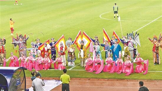 4月6日晚,中超第五轮梅州客家对阵武汉三镇的比赛在梅州五华奥体中心惠堂体育场精彩举行。这场比赛可谓相当精彩,梅州客家在主场先丢一球的情况下,下半场连扳三球,以3比1战胜武汉三镇。 比赛现场,球迷们汇聚一堂,处处洋溢着活力与激情。值得一提的是,比赛中场休息期间,一场别开生面的文化与体育的融合盛宴——广东汉剧精彩上演,广东汉剧传承研究院为赛事注入了独特的文化内涵,不仅提升了赛事整体形象,还为观众带来了前所未有的观赛体验。 据了解,比赛前,赛场大屏播放的广东汉剧宣传片,以生动的影像展示了广东汉剧的发展脉络、艺术特色和经典剧目,让现场观众和电视机前的球迷们对这一传统文化有了进一步的认知。 典雅、大气的汉韵歌舞《南国牡丹吐芬芳》拉开表演的序幕,现场巧妙地将汉剧行当元素与现代歌舞风格相融合。悠扬的旋律、深情的演唱,为紧张激烈的足球比赛增添了温情的氛围,让观众在享受足球激情的同时,也沉浸在艺术的感染力之中。 此次演出,广东汉剧传承研究院高度重视,共派出42名演员。许多年轻球迷在观看演出的过程中,对广东汉剧产生了浓厚的兴趣,纷纷表示想要进一步了解这一传统艺术。这不仅扩大了广东汉剧的受众范围,还为其传承注入了新的活力。 据悉,广东汉剧的表演助力梅州五华赛区提升文化氛围,使梅州赛区成为展现地方文化特色的典范。这种文化与体育的深度融合,为未来文体活动的创新发展提供了宝贵的经验。(文/图 赖嘉华)
