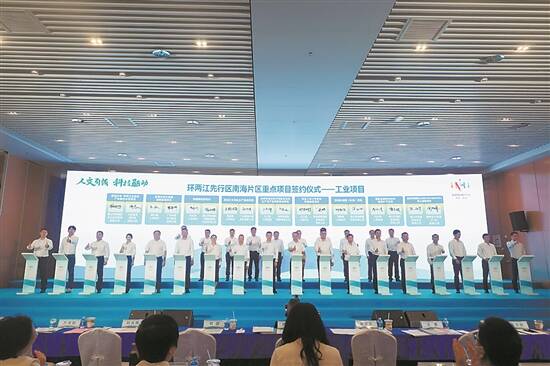 文/图 羊城晚报记者 张闻 王泽宝(除署名外) 4月9日,建设环西江-北江区镇村高质量发展先行区南海片区项目发布会暨听音湖氢能游船投放仪式举行。一大批文旅、产业、教育项目现场发布签约。记者了解到,这也是佛山市环两江先行区战略提出以来,佛山区级首个环两江先行区建设总体思路公布。 战略:全力打造环两江先行区的“主引擎” 南海区委副书记、区委政法委书记岑灼雄介绍了环西江-北江区镇村高质量发展先行区南海片区建设总体思路。岑灼雄提出,南海要全力打造环两江先行区的“主引擎”、城乡区域协调发展的“样板间”,人文经济发展的火车头、科技成果转化的承载地、生态经济高质量发展的示范区,加快建成世界级生态水脉、国家级文化公园、共同富裕的先行区。 为此,南海要坚持人文引领,科技驱动。首先,南海要打造科技驱动的新样板,包括投入170亿元打造狮山新材料万亩产业园,重点布局新材料、半导体、新能源、高端装备等,投入20亿元打造仙湖国际科创社区,集海科创园要立志于做智能电子及智慧家居主题产业园;统筹投入超52亿元推进南海区预制菜产业园建设,打造华南味谷。 与此同时,南海要打造人文引领的新样板,打响“西樵山文化”核心IP,打造大地艺术节、南海“龙超”、“墟游记”三大特色文化品牌,做强西樵山文旅产业集聚区,推动文化产业跨界融合等重点项目;通过绿美提升行动打造金沙户外休闲运动岛核心区建设项目,强化全流域水生态治理、实施绿美建设提质工程、打造“两江岭南乡韵”城乡风貌示范带、创建省级水经济发展试验区等项目。 行动:听音湖枢纽开通三条水上核心线路 南海西部三镇尚未通地铁,岑灼雄表示,要大力配合市推进佛山地铁2号线二期建设,让广大群众在家门口就能直达广州南站,1小时到达广州市中心。此外,教育、医疗、养老是广大群众最切身的利益,南海将用5年时间推动实现全生命周期公共供给高品质跃升。 南海区委宣传部、区教育局、区国资局、西樵镇,以及九江源林投资、丹灶清溢光电、狮山大洋医疗三家代表企业阐述了详细发展计划。 南海区委宣传部常务副部长刘夏远提出,要发挥同心文化发展基金作用,建设考古遗址公园,推动环西樵山片区争创省级旅游度假区;高质量筹备第三届大地艺术节,打造3条总长约50公里的水上乡村示范带;推进纪录片《桑园围》、电视剧《湾区青年》、电影《长安的荔枝》创作,推动广东氢能游艇全国首家4S店开业运营,“小黄鸭童梦世界”主题乐园等特色项目建设;盘活南海丝厂为丝潮集文创园和桑园围博物馆,打造靛蓝纹学酒店牛仔博物馆等。南海还要推动国际龙舟运动中心10月前完成赛道主要工程,举办南海“龙超”冠军赛总决赛;完善“墟游记”品牌运营管理模式;指导仙岗村、敦根社区争创国家3A级景区,九江双蒸博物馆联合乐醍1821项目整体争创国家4A级景区;争创“中国粤式茶点之都”等。 西樵镇党委书记夏泽鸿提出,西樵要以桑园围为脉,发展水上运动、游船观光等业态,依托听音湖枢纽开通三条水上核心线路连通南海西部三镇,全力推进广东千古情景区万人实景剧场、LT DUCK 小黄鸭超级乐园、“南海菜”旗舰店等文商旅项目加速建设等。 九江企业代表——源林投资(广东)有限公司总经理关嘉华表示,九江儒林湾活力中心项目将依托桑园围水脉的生态肌理,融合龙舟与岭南水乡文化,规划建设一条国际标准龙舟赛道和一个龙舟公园,打造南海国际龙舟运动中心、中国传统龙舟文化传承基地、中国国家龙舟队集训基地等。与此同时,源林为民创业饭堂在27个村居逐步布局,为邻里街坊带来便利和实惠。 示范:促进全区城乡区域协调发展 会议现场进行了系列项目签约仪式,第三届广东南海大地艺术节项目、有为水道康园核心区提升活化项目等9个文旅项目,电将军低空经济用固态电池生产及产业集群基地项目、氢动未来·环两江水经济产业融合示范项目等9个产业项目,中国特色土著鱼及观赏鱼育繁推一体化基地项目、华豆科技高产大豆育种繁种基地等6个农业项目,南海区第八人民医院改扩建项目、儒林湾龙舟公园(名企百园)项目等6个民生项目,石门西樵山学校、南海儒林实验学校、南海实验学校有为校区3个教育项目现场签约。 南海区区长王勇表示,佛山建设环两江先行区是南海难得的机遇,但是南海从来都是“不等不靠”的,全区的党政干部、企业家、村居群众都是主人翁。要以“二次创业”精神再次争当城乡区域协调发展的示范标杆,引领环两江先行区南海片区建设全面开花、结出硕果,为“再造一个新佛山”,展现南海新担当、作出南海新贡献。 南海区委书记顾耀辉表示,规划建设环两江先行区,是佛山市委着眼落实“百千万工程”“再造一个新佛山”做出的重大部署,更是南海促进城乡区域协调发展、迈向共同富裕的关键抓手。先行区核心区的六个镇街中,南海西部三镇全域入列,GDP占比近四成;协同区中,狮山有一席之地。与先行区其他区域相比,不管是人文、生态还是科技、产业,南海片区都具有明显的比较优势,必将极大承接先行区建设红利。 顾耀辉提出,先行区南海片区建设要在人文引领、科技驱动、共同富裕上攻坚突破、先行示范。人文领域,南海要构建一套岭南文化的完整谱系,以“龙超”系列赛事为牵引,深入挖掘