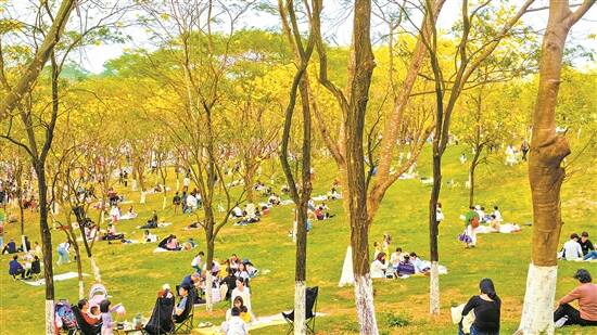 市民在树林中小憩露营 羊城晚报资料图 |