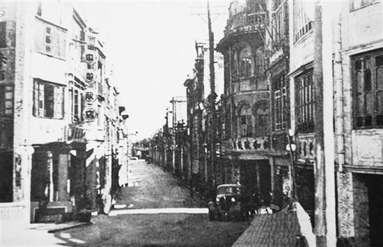 两江夹岸,百业咸集,商旅辐辏,水东街成为惠州最繁华的商业街 摄于1938年,翻拍自《惠州近代历史图录》 |