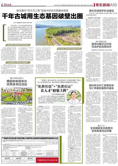文/图 羊城晚报记者 曾柯权 通讯员 潮宣 当前的潮州,山水间跃动着发展的脉搏。韩江碧波映照着古渡新景,千年土楼彰显着历史韵味,全市各地鸣奏着农文旅交织融合的新业态……记者连日来走访潮州全市多地发现,在推进“百县千镇万村高质量发展工程”生动实践时,潮州以生态为底色、文化为灵魂、产业为纽带,推动农文旅深度融合,在青山绿水间绘就城乡协调发展的魅力画卷。 韩水新韵,因地制宜打造生态游 潮安区归湖镇金舟村依托韩江生态资源,通过建设40.19公顷郊野公园实现转型发展。据工作人员介绍,该村近年重点挖掘“沿江风光、生态果林、田园景观”三大资源,引导村民规模化种植鸟梨、龙眼等经济作物,通过“旅游+”模式串联“食住行游娱购”产业链,规划形成水陆旅游观光轴及江岛风情旅游度假区、韩江水上旅游观光区、生态果园观光区三大产业发展片区,实现生态效益与经济效益双赢。 在韩江另一端的江东镇,溪东种养专业合作社通过“农业+文化+旅游”深度融合,探索出三产协同的乡村振兴路子。该社自2019年成立以来,依托1709亩连片复垦农田,建成广东省首个水稻机械精量穴直播技术示范基地,实施“冬季毛豆-水稻-马铃薯”轮作体系,将土地复种指数提升至200%。合作社负责人吴传生介绍,2021年合作社获评“广东省休闲农业与乡村旅游示范点”,作为省级示范社,其“土地租金+务工薪金+分红股金”三重收益模式带动周边200余农户增收,借助新媒体营销实现农产品溢价超30%。未来计划深化“企业+合作社+农户”联农机制,以乡土风情结合数字农业,力争三年内带动区域乡村旅游年收入突破千万元。 山乡蝶变,山林写出“致富经” 在潮安区归湖镇凤东村,昔日的“空心村”摇身一变成为集观光、民宿、露营、茶座、研学于一体的文旅综合体。 近年来,该村依托发展需求、地域禀赋及特色资源,布局整体风貌提升、基础设施完善、特色产业优化等项目,成功引进投资额达1亿元的彩英坑(蔡东坑)文旅综合体项目“奇林逸居”乡村酒店,以点拓面打造具有乡村气息、岭南韵味的乡村酒店示范点。 据凤东村党总支书记、村委会主任谢侨生介绍,该项目今年春节试营业以来,日均客流量超2000人次,带动当地村民就业30余人次,同时促进凤东村及周边村庄农特产品销售,实现增收,成为集文化、旅游、休闲于一体的热门景点。 近年来,当地还坚持产业为要,走出一条复合产业发展“路径”。多项引擎驱动村集体经济收入从2020年的70多万元提升至2024年的210.4万元。 古今对话,文化遗产焕发时代生机 在现代文旅项目蓬勃发展的同时,潮州的历史瑰宝也在乡村振兴中重获新生。 全国重点文保单位道韵楼以八角形土楼奇观,成为研学旅游热点。道韵楼是明万历15年(公元1587年)修建的古建筑,其所处的饶平县三饶镇位于潮汕民系和客家民系的交会处,因此在建筑风格上也呈现出潮汕、客家两个传统建筑体系相互融合的特征。2020年1月,当地投资2800多万元对其进行“修旧如旧”的修复,在历时4年完成多项修复后面貌一新,于去年春节逐步恢复开放。 而在石壁山风景区,摩崖石刻群与革命烈士纪念碑构成时空叠印的文化层。景区在7.5平方公里范围内融合自然与人文景观,核心区3.2平方公里内分布纳海楼、丽泽湖、雷音禅寺等景点,现存摩崖石刻群汇集赵朴初、饶宗颐等名家墨宝。 该景区以“粤东之胜景”著称,既有涑玉泉传说等历史积淀,又通过现代文旅建设焕发活力。半山腰观景平台可俯瞰凤江河畔风光,茶艺休憩区内品茗工夫茶,兼具山林野趣与城市记忆。2021年新增电视塔观海长廊等设施,形成自然景观与人文遗迹交相辉映的旅游胜地。