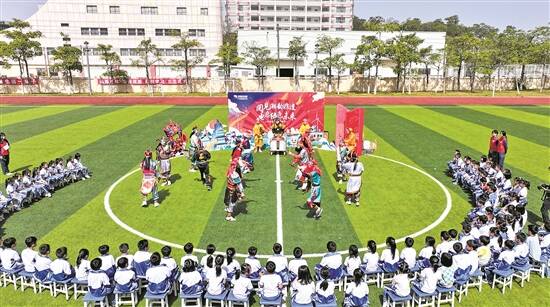 在第30个世界读书日来临之际,南方电网广东揭阳供电局在揭阳市惠来县实验小学举办“阅见潮韵非遗”主题活动,通过英歌舞表演、经典名著品读与互动交流,带领130多名小学生“沉浸式”感受潮汕非遗的魅力,激发学生们的读书热情和对家乡文化的认同。 活动现场,16名来自揭阳普宁供电局青年英歌队的队员化身“文化使者”,以双槌为笔、以舞步为墨,演绎了英歌舞经典片段,引得现场孩子们连连喝彩。 互动体验环节,在英歌舞队员的带领下,十几个小学生经过短暂练习,便迅速掌握“十字步”基础架势和握槌手法,跟随着鼓点,小学生击槌的声响从凌乱渐成韵律,脚下的舞步也愈加有力量,活动现场气氛热烈。 在“名著品读”环节,志愿者以《水浒传》为纽带,生动讲述“武松打虎”等故事,并巧妙结合英歌舞的历史渊源与艺术特色,深入解读脸谱中的忠勇寓意、槌法中的武术精髓。 “书里的很多字我还不认识,但叔叔们分享书中的故事和英歌舞表演让我觉得这本书很有趣,回家后我要让妈妈讲给我听!”一年级学生蔡乔晔兴奋地分享道。活动寓学于趣,用创新融合的方式激发学生们的阅读兴趣,推动优秀传统文化赓续和发展。 据了解,去年,揭阳供电局在惠来新增建设两间南网知行书屋,配备上万册优质图书,惠及学生两千余人,截至目前,揭阳市共有4间南网知行书屋。揭阳供电局表示,将充分利用知行书屋这一平台,凝聚一批青年志愿者,深入开展书香校园、知识普及、旧书捐赠等各类志愿服务活动,助力乡村教育发展。 (文/许志鹏 方虹 周舒婷)