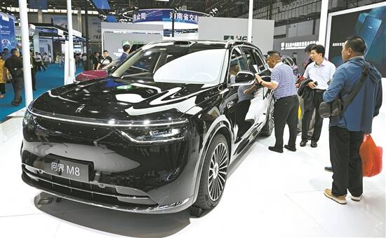 观众在消博会现场了解华为问界M8汽车 新华社发