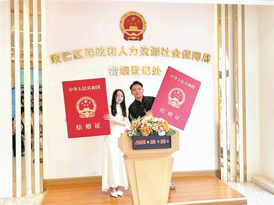 羊城晚报讯 记者王泽宝、通讯员佛民政摄影报道;2025年5月20日谐音为“爱你爱我,我爱你”,在这爱意满满的日子里,佛山市共1298对新人办理结婚登记,佛山各区婚姻登记处成为了甜蜜与幸福的聚集地,见证了新人们的美好时刻。 5月20日一大早,佛山各婚姻登记处就人头攒动,空气中弥漫着幸福的气息。准新人们满怀期待,脸上洋溢着灿烂的笑容,他们或手挽手,或肩并肩,共同迎接人生中的重要时刻。 各区婚姻登记处现场布置得浪漫而温馨,气球、鲜花、爱心装饰随处可见,为登记现场增添了一份浓浓的爱意。工作人员也早早到岗,热情地为每一对新人提供服务,耐心解答各种问题,确保登记流程顺利进行。 在众多登记的新人中,有的是为了这个特别的日子精心准备了很久,从挑选结婚戒指到衣着打扮,每一个环节都充满了心意。他们希望在这个满是爱的日子,让彼此的爱得到最美好的见证。 “我们盼这一天好久了,‘5·20’这个日子很有意义,寓意着我爱你,能和挚爱的另一半来办理结婚登记,我们的爱情终于修成正果!” 一位刚完成登记的新人兴奋地说道。 据悉,5月是婚姻登记全面实施“全国通办”、免交户口本和居住证的首月,恰逢“5·20”这个特别日子,结婚登记迎来了高峰日。为了给新人一个良好的办证体验,佛山各婚姻登记处在“5·20”当天采取了一系列措施,以应对结婚登记高峰。增设窗口、增加工作人员,提前并延长办公时间,确保新人高效便捷完成登记;设置颁证仪式台、户外颁证点等浪漫场景供新人打卡拍照,举行别出心裁的婚俗文化活动,增加婚姻登记的仪式感;提供婚姻辅导服务,为新人们送上婚姻生活的第一课,帮助他们更好地经营未来的婚姻……这个“5·20”,佛山各区婚姻登记处成为了爱的港湾,见证了新人们的爱情故事。