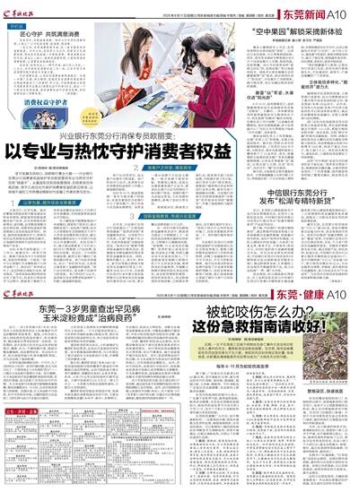 文/姚梓婷 图/受访者提供 近期,一女子在海南三亚被不明物咬伤身亡事件引发全网对蛇咬伤人事件的关注。夏季蛇类活动愈发频繁。在东莞,每年因被毒蛇咬伤而送医伤者也不在少数。被蛇咬伤后如何做应急处置、快速就医,抗蛇毒血清储备是否充足等也成为广大网友关注的问题。 每年4-11月为蛇咬伤高发季 据了解,广东地区共有蛇类6科50属93种,其中毒蛇有33种,最为常见的有竹叶青蛇、银环蛇、眼镜蛇、眼镜王蛇、五步蛇、蝰蛇等。竹叶青蛇是广东地区活动最频繁,也是致伤人数最多的毒蛇。 东莞市疾病预防控制中心表示,广东属于亚热带气候,夏季温热湿润,蛇类活动频繁,尤其是在傍晚和凌晨时分,蛇咬伤的高发季节为每年的4月至11月,其中7月和8月是蛇咬伤事件最为多发的时段。 东莞疾控提醒广大市民,如不慎被蛇咬伤,一定要保持冷静,现场尽量做无伤害性处理,减缓毒液吸收,尽快送医救治。可以根据伤口颜色和咬痕初步判断是否为毒蛇咬伤,如果不能确定,应假定毒蛇咬伤,并按以下步骤迅速进行急救。 1.脱险:摆脱蛇,脱离危险环境。如果被蛇咬住不放,可以用棍棒或者其他工具促使它离开。不要去追打蛇,避免二次受伤。注意,蛇的神经非常丰富,蛇头即使与身体分离,在数十分钟仍然具有反应能力,可以咬合和喷射毒液,特别是眼镜蛇和五步蛇。所以,即使蛇看上去已经死亡,仍存在一定危险,不要轻易去触碰它。 2.冷静:立即停止运动,可以原地坐下,保持冷静。切勿惊慌奔跑,不可让伤者饮用酒精、浓茶、咖啡等兴奋性饮料,以免加速血液循环,加快毒液吸收和体内扩散。 3.辨蛇:辨认伤口的形态,毒蛇有毒牙,伤口上会留有两颗较大呈“. .”形状或者四颗呈“::”形状的大牙印,而无毒蛇咬伤的伤口为一排整齐且深浅一致的牙印。记住蛇的蛇体、头型、颜色等特征,或者拍下照片,详细告知急救人员。 4.解压:去除受伤部位的受限物品,如戒指、手镯、脚链、手表、鞋子、较紧衣袖或裤袖等,防止肿胀之后无法取下。 5.冲洗:用大量清水、肥皂水或者0.05%高锰酸钾液冲洗伤口及周围皮肤,减少毒素吸收。 6.制动:用树枝或夹板对患肢进行制动,使患肢下垂,受伤部位保持在心脏水平以下。 7.包扎:在肢体咬伤部位的近心端5-10厘米处用绷带、绳带、布带等加压包扎。如手指咬伤包扎在指根,手掌或前臂被咬伤可包扎在上臂中下三分之一处,脚趾被咬伤可包扎在趾根部,足部或小腿被咬伤可包扎在膝关节下,大腿被咬伤可包扎在大腿根部。包扎不可太紧,其程度应以能阻止静脉和淋巴回流,不妨碍动脉流通为原则。 8.就医:除非确定是无毒蛇咬伤,否则都应当做毒蛇咬伤处理。请周边的人立即拨打120急救电话,尽早送至有蛇毒血清的医院接受进一步治疗。 警惕误区,快速就医 切勿用嘴直接吸吮伤口!在吸吮的过程中,如果施救者的口腔有伤口,或者不小心把蛇毒咽进去的话,那么会导致施救者也中蛇毒。切勿用刀切割伤口排毒!开创不当易导致伤者失血过多和伤口感染,最好的治疗方案就是注射相应的蛇毒血清。 另外,由于蛇毒的种类不同,被毒蛇咬伤以后,即使伤口看上去并不严重,也不能够掉以轻心。比如,被神经毒性的蛇咬了以后,患处并没有明显的变化,但是1到2个小时以后,就会出现麻木、复视、呕吐,最后发展到呼吸肌麻痹,导致呼吸暂停,最终死亡。 在野外户外遇到蛇,“打草惊蛇”是很有必要的。如果在野外看到蛇,最好的方法是和它保持安全距离。如果它向你靠拢,可以用树枝驱赶;如果向相反的方面游走,就不必理会。 这些方法看似简单,关键时刻却能救命!外出游玩要做好防护措施,发生意外及时科学处理!
