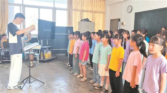 文/图 羊城晚报记者 曾柯权(部分图片由受访者提供) “厝门脚石榴花,叫做‘红花’,摘一朵悄悄放在书包内……”日前,潮州市潮安区金石镇实验学校“初音”合唱团40余名学生,在仙一小学礼堂以潮汕方言唱响《山月下的索玛花》。这个从一台钢琴起步的乡村童声合唱团,让纯净童声成为城乡美育的桥梁,绽放希望的光芒。 从仅有1台钢琴起步,潮安区金石镇实验学校“初音”合唱团用三年时间,谱写了一个关于梦想、坚持与蜕变的动人故事——这不是法国电影《放牛班的春天》的翻版,而是属于乡村教育的真实春天。此前,该合唱团的训练日常在网络上火爆出圈,备受关注。连日来,记者来到该校,记录合唱团的成长故事,探寻这所乡村小学合唱团背后的魅力。 缘起:从比赛到梦想的启航 期末考试结束隔天,许多学生开启了“假期时光”,但金石镇实验学校“初音”合唱团的40余名成员开始了集结排练,紧锣密鼓筹备着他们的首场音乐会。静谧的校园里,清澈的童声如涓涓细流,悦耳动人。 在排练间隙,记者见到了合唱团的指导老师黄建权。“初音”合唱团的诞生源于机缘巧合,也来自于他一个简单而温暖的初衷。“当时区里举行合唱比赛,所以我们临时组建了一支队伍去参加,效果还不错,得奖了。”黄建权坦言,在比赛后,他发现学生们的课余生活相对单调,为了丰富学生的精神生活,挖掘他们潜力,鼓励他们勇敢发出自己的声音,营造良好的校园氛围,于是他向学校申请,以比赛队伍为基础,和本校老师吴泽源成立了合唱团。“初音”这个名字寓意着学生在这所学校里唱出最初始、最本真的声音,象征着他们音乐梦想的起点。 回首初创时期,黄建权感慨万千,毕业于广东省外语艺术职业学院的他是当时该校唯一一位音乐专职老师,他初来时连基本音乐设备都匮乏。直到学校成立小半个学期,才拥有了第一台钢琴。合唱团的音乐教室也几经搬迁,只为寻求更好的学习环境。“我们一直在‘摸着石头过河’,不断探索出行之有效的路径,学校在有限条件下,也始终尽力为我们提供支持。”黄建权说。 尽管条件有限,“初音”却绽放出独特光彩。从2022年至今,合唱团一共培育过近百名学生。黄建权和吴泽源的努力被许多同事看在眼里,2024年下半年,新上岗的年轻教师林舒涵也加入到合唱团的日常教学工作,协助学生训练。排练之余,黄建权将排练片段上传至短视频平台。视频没有华丽运镜,也无夺目剧情,孩子们那童真、纯净的声音却深深打动了无数网友,被亲切称为中国版“放牛班的春天”。 耕耘:智慧教学播撒音乐种子 教学的核心是平衡与融入。“我们需配合主科的课时安排,在不影响日常学习的前提下,效率最大化地教会孩子们。”黄建权与吴泽源将识谱、乐理融入常规音乐课,在大班课里普及简谱、五线谱知识,培养学生基础的歌唱能力,并从中选拔优秀成员加入合唱团。训练频率与时长均经过深思熟虑,确保学生的学业和爱好能两头兼顾。通过这种训练方式,学生们从最开始每学期学会几首歌,发展到如今一学期能学十余首作品。 “我希望教给学生的不仅仅是歌曲,还要教给他们如何认识音乐、听懂音乐中的乐理知识,让他们能拿着钥匙去打开音乐的大门,将来可以通过音乐享受生活。”黄建权表示,如今高年级的学生都会识谱,五线谱也能轻松上手,合唱团低年级的学生也能慢慢地跟着五线谱唱出来。 在师资、场地、设备相对有限的条件下,黄建权和其他老师尝试了各种独特而高效的教学和训练方法。他们克服了音准、节奏、声部配合等常见难点,让孩子们多听、多唱、多模仿,通过反复练习来提高。同时,他还鼓励孩子们相互学习、相互帮助,形成了良好的团队氛围。 “加入合唱团让我更自信了,上课回答声音都变大了!”“我还不能流利看谱,所以每天更刻苦练习……”孩子们的心声道出了音乐带来的改变。 收获:让身边的世界更美好 2025年7月8日,是“初音”合唱团成立以来的大日子。这一天,他们迎来了首场音乐会表演。孩子们用天籁般的声音,演唱了二十首歌曲,赢得了台下的阵阵喝彩。 对于黄建权来说,这场音乐会应该是最让他难忘和自豪的时刻。为了让家长看见孩子们学习的成果,让学生有展示的机会,三位老师萌生了举办音乐会的想法。三位老师提前多月开始准备排练、场地、服装、化妆等,只为给学生留下美好的回忆。 看着孩子们在舞台上自信地歌唱,黄建权在台下调音台前,抹起了泪水。“我们没有白努力,他们的付出也真的被看到了。学生们在舞台上的样子,是在发光的,是我们教出来最好的样子!”黄建权说,“我们深知随着时间不断流逝,孩子们一年一年地长大、总会有离开我们的那一天,想到一手带出来的孩子们会离开,心里也十分不舍得。” 这场音乐会,不仅是孩子们的成长礼,更是黄建权与团队多年坚守的见证。“我们想趁现在孩子们还跟着我们学习的这个时间里,多跟他们一起做点事,一同经历一同感受,一起留下美好回忆。等他们长大以后偶尔回首童年时光,还能记起我们三个老师、记起这场音乐会、想到在合唱团里学习的日子能发自内心的开心,我们就算是超额完成任务了!”黄建权说。 老师们的愿望都十分朴素且真挚,吴泽源说:“希望孩子们能在学习合唱的过程中收获自信、友谊与快乐,成为懂得生活,懂得合作的人。”林舒涵表