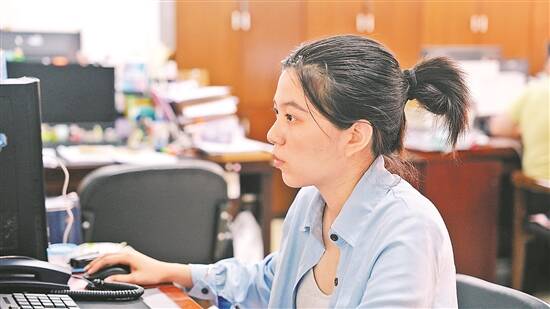 重庆大学实习生周昊璇在东莞市司法局虎门分局实习 林振烽 摄 |