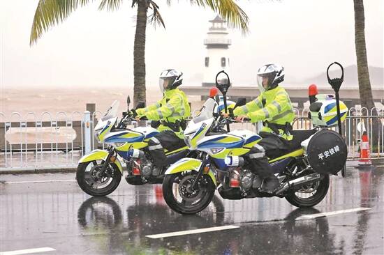 防御台风“韦帕”一线执勤的珠海平安铁骑队 |