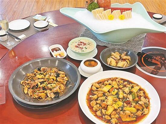 羊城晚报讯 记者钟泽诗、通讯员程光维摄影报道:冰镇水果笋、金钱草蒸清远鸡、狗果酱碌清远黑棕鹅、黑松露虾滑酿清远黄豆腐、秘制鲍鱼海鲜鸡煲……近日,“南海菜之清远优品食材美食周”第二期温暖回归,位于佛山市南海区的西樵旺阁渔村、里水花潮宴、喜悦轩酒楼三家本土品质餐厅携手,为市民游客奉上一场融合清远山野风味与南海烹饪技艺的金秋味觉盛宴。 本次美食周的核心亮点,在于清远得天独厚的优质食材。作为北回归线旁的绿色宝地,清远孕育出包括经过180天自然生长、皮薄肉滑的清远鸡,昼夜温差滋养、爽脆清甜的山坑笋,肉质紧实,口感鲜美的清远本地黑棕鹅,以及软滑香糯、品质升级的岭南丝苗米等特色食材。 当天,在西樵旺阁渔村的现场,还专门设置了腐竹、黑棕鹅、丝苗米等清远特产的展示台,不少食客“闻香而来”,或品尝,或咨询购买。 另外,记者还走进了旺阁渔村的后厨,目睹菜心干猪骨粥、酸笋豉汁蒸大肠、金钱草蒸清远鸡等一道道美味的诞生过程。 同一时间,里水花潮宴和喜悦轩酒楼也十分热闹,各餐厅均将清远食材本味与创意烹饪结合。例如清远鸡以白切、清蒸等朴素做法凸显鲜香,山坑笋则通过凉拌、清炒、入汤等方式呈现多样口感,更有笋尖拌树仔菜、西施水果笋豆腐汤、青花椒鸡油焗鱼头、海鲜泡三色米饭等特色菜品,每一道都承载着饮食文化与匠心故事。 “清远的笋口感清甜,冰镇之后吃起来会更清爽!”准备菜品的过程中,旺阁渔村的厨师介绍道。实际上,这场美食盛宴的背后,离不开3位烹饪大师的匠心加持。菜品研发由国家高级烹调技师吴荣开、亚洲名厨奖得主李志桓、拥有30年粤菜功底的刘培清“操刀”。 目前,参与活动的3家餐厅已同步推出美食周限定菜单,菜品都各有特色。比如花潮宴推出的清远骆坑笋干焖吊水无骨鱼、凉拌清远笋衣、狗果酱碌清远黑棕鹅,以及喜悦轩推出的鲍汁水果笋、秘制鲍鱼海鲜鸡煲等。市民不妨前往品尝,共同在佛山南海感受清远山野的馈赠,体验岭南厨艺的传承与创新。