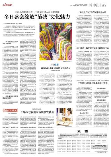 羊城晚报记者 张德钢 岁末冬初,中山小榄再度因菊而盛。2025年小榄菊花会不仅以30万盆竞放菊花勾勒出满园金霞,更以一场融文化、商贸、科技与体验于一体的综合性盛会,生动演绎了“以花兴城”