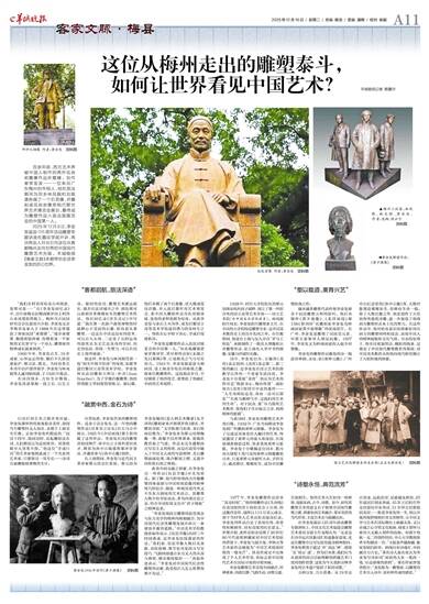 羊城晚报记者 赖嘉华 百余年前,西方艺术界被中国人制作的两件花岗岩雕像作品所震撼。创作者李金发——一位来自广东梅州的年轻人,他在旅法期间为同乡林风眠和刘既漂各做了一个石膏像,并雕刻成花岗岩像亮相巴黎世界艺术博览会展台,最终成为雕塑作品入选法国展览会的中国第一人。 2025年12月8日,李金发诞辰125周年活动雕塑专题讲座在嘉应学院开讲,再次将众人目光引向这位从客都梅州走向世界的中国现代雕塑艺术先驱。羊城晚报《客家文脉》本期带你走进李金发的匠心世界。 “客都启航,旅法深造” “我们乡村周围有高山环绕着,苍翠可爱……”在《李金发回忆录》中,百年前梅县区梅南镇罗田上村的山水风情跃然纸上。梅州市古民居研究会会长温亮兴介绍,李金发父亲李焕章及家人于1888年在这里建造了客家民居“承德第”。“漫步承德第,触摸斑驳砖墙,仿佛看见一个家族的文化坚守与一个诗人、雕塑家的精神成长彼此映照。” 1900年冬,李金发出生,19岁成家,心怀远志的他,婚后不久即别妻赴沪,修习法、德文。当时众多艺术青年自沪漂洋留学,李金发与林风眠等人遂同船西渡,于1920年抵法。 在异国他乡,方知生计维艰。李金发决意掌握一技之长,以艺立身。彼时的法国,雕塑艺术源远流长,漫步在法国城市之中,到处都可以看到许多栩栩如生的雕塑艺术作品。他在回忆录《浮生总记》中写道:“我在第一次游卢森堡博物馆时就醉心于美丽的石像,即有意从事雕塑,一是这在中国是没有的技术,可以出人头地,二是受了五四运动的鼓吹认为文艺是高尚的学问,历史的结晶,值得一生努力,可以在历史上留些痕迹。” 就这样,李金发与林风眠凭着一股“初生牛犊不怕虎”的闯劲,如愿考进巴黎国立高等美术学校。李金发师从法国雕刻大师让·朴舍(Jean Boucher),为了学做肖像雕塑,他经常将黏土带回旅馆里练习。据记载,他后来做了两个石膏像,请人做成花岗岩像,并入选巴黎世界艺术博览会,系中国人雕刻作品首次亮相该展,连他的老师也颇为惊奇。从此李金发与金石土木为伴,成为巴黎国立高等美术学校最具潜力的高材生之一。他也在心中暗下决心,学成后报效祖国。 “李金发是雕塑作品入选法国展览会的中国第一人。”知名收藏鉴赏家罗雄评价,其早期作品如《未腐之先》《耶稣》等,已见颓美之气与写实功力。1924年,李金发取道意大利回国,受上海美专校长刘海粟之邀,准备任教雕塑科。这段旅法岁月,不仅锤炼了他的技艺,更塑造了他融汇中西的艺术视野。 “融贯中西,金石为诗” 归国后的艺术之路并非坦途。李金发满怀热忱准备投身美育,却因当年雕塑科无人报名,未能于上海美专任教。正如李金发所描述的:“民国十四年,我回国时,说起雕刻这名词,人们都误以为是刻图章。其情状颇令人哭笑不得。”他这位“学成归国”的艺术家很快就成了一个失业的艺术家,只能靠另一项专长——诗词方面赚取稿费维持生计。 尽管如此,李金发仍坚持雕塑创作。是金子总会发光,这一年他的雕塑作品《贝多芬之音乐》在天马会中展出,1925年《中国画报》第5期刊载了这件作品。李金发在国内雕塑界初试锋芒,孙中山之子孙科赏识其才,聘其为孙中山陵墓图案评审委员,并邀其参与《孙中山像》创作。 在上海期间,李金发与近代民主革命家蔡元培交往甚深。蔡元培为李金发编的《意大利艺术概要》及节译的《雕刻家米开朗琪罗传》题名,并赠其对联:“文学纵横乃如此,金石刻画臣能为。”李金发亦为蔡元培塑胸像一尊,此像不仅形神兼备,更摄其教育家之气度。作品未完全遵循西方写实主义的传统,而是在造型中融入了中国文人画的写意精神,尤以雕塑面庞处理,既合解剖之精,又透中国传统石刻之神韵。 此类中西交融之探索,在李金发另一件作品《伍廷芳像》中尤为明显。据了解,他巧妙地将西方肖像雕塑的体量感与中国传统造像的精神性巧妙结合,铸就一种既具现代性又不失东方韵味的艺术语言。其雕塑人物少有夸张动态,多为内敛沉思之态,恰合中国传统文化中“君子慎独”之精神追求。 “李金发将西方雕塑的造型理念与东方美学的精神内核相融合,为中国现代纪念性雕塑发展开辟出一条兼容并蓄的道路。”中国美术学院教授孙振华表示,《伍廷芳像》历时三年时间落成,是李金发比较满意的作品。“你们看,伍廷芳像人物目光坚毅,衣纹流畅,细节处可见西方写实技巧,气韵间却透出东方文人的从容与脊梁,确实做得很好……”孙振华还表示,“李金发对中国现代纪念性雕塑的贡献,我觉得后人怎么称赞他都不为过。” “塑以载道,美育兴艺” 1928年,时任大学院院长的蔡元培择址杭州西子湖畔,创立了第一所综合性的国立高等艺术学府——国立艺术院(今中国美术学院前身)。林风眠担任校长,李金发担任雕塑系主任,在中国的大学院校设雕塑专业,是中国美术教育史上的首开先河之举。在任教期间,他还在上海与友人开办“罗马工程处”,承接制作了一批名人塑像和公共雕塑作品,如上海名人李平书的铜像、安徽马祥斌军长像。 同年,李金发自办、主编的《美育》杂志创刊,《美育》杂志第二、第三期的编订,是李金发在国立艺术院除教学以外的一个重要生活内容。李金发十分重视“美育”,他认为艺术的作用是“快慰身心,陶冶性情”,诚如他在《美育》创刊号中