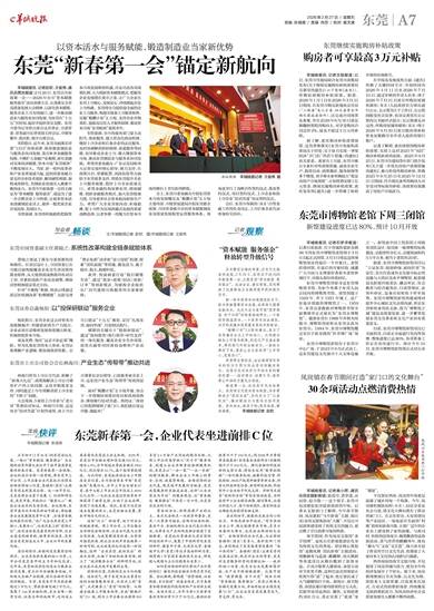 羊城晚报记者 余宝珠      正月初十(2月26日)的东莞会议大厦,一场以“资本赋能 服务强企” 为主题的动员部署大会拉开了城市高质量发展的新春序幕。东莞新春第一会现场,会议的座次安排一改