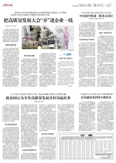 羊城晚报记者 陈卓栋 春启新程,实干为先。农历马年开工第一天,全省高质量发展大会擂响奋进战鼓,江门迅速行动、紧跟部署,始终将制造业与服务业协同发展作为推动高质量发展的重要抓手,市委