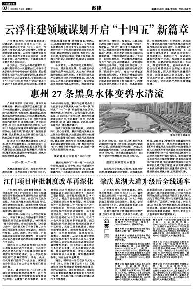 惠州市秉持“厂—网—河”一体化综合治理,截至12月中旬,2020年新建污水管网544公里,改造老旧管网142公里,新续建污水厂8座通水试运行,新增处理能力15.28万吨/日。2016年以来,惠州市累计建成污水管网1768公里,改造老旧管网440公里,提标改造污水处理厂39座,完成新续建污水处理厂23座,新增处理能力73.53万吨/日。全市建成城镇污水厂108座,合计污水处理能力222.03万吨/日。