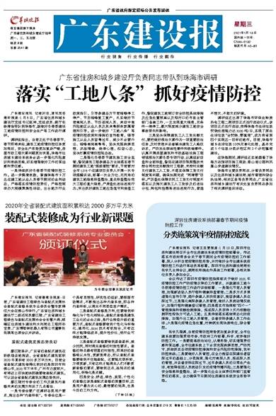广东建设报讯 记者刘洁、通讯员岳建轩报道:1月8日,广东省住房和城乡建设厅党组书记赵坤,党组成员、副厅长杨清淦带队到珠海市,就做好冬春季建设工地疫情防控和安全生产等工作进行调研。