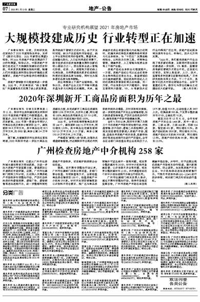 广东建设报讯 记者王亚雯报道:1月11日,深圳市住房和建设局发布深圳2020年度房地产管理工作数据盘点。数据显示,2020年深圳新开工商品住房创历史新高。2021年第一季度全市预计入市商品住房及商务公寓项目20个,建筑面积94.9万平方米,其中商品住宅92.5万平方米,约8900套;商务公寓2.4万平方米。