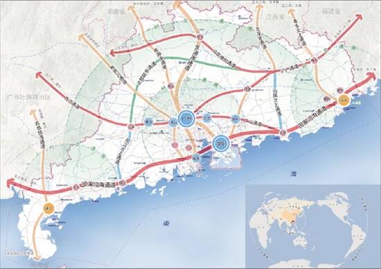 都市圈建设交通先行。《规划》提出,通过构建“12312”交通圈和“三横六纵两联”的综合交通体系,城乡居民出行品质将进一步提高。其中,1小时交通圈包括粤港澳大湾区、汕潮揭都市圈和湛茂都市圈内部;2小时交通圈包括粤港澳大湾区至粤东西北地区;3小时交通圈将通达全国、东南亚主要城市;12小时交通圈则将通达全球主要城市。