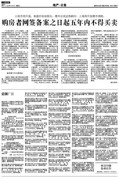 广东建设报讯 3月3日晚间,上海市房屋管理局发布《关于进一步加强本市房地产市场管理的通知》(以下简称《通知》),《通知》称,为落实《关于促进本市房地产市场平稳健康发展的意见》(沪建房管联〔2021〕48号),进一步加强土地市场和商品住房市场管理,着力稳地价、稳房价、稳预期,确保本市房地产市场平稳健康发展,将从宅地供应、新房房价、商品住房交易、房产中介管理等7个方面进行管控。