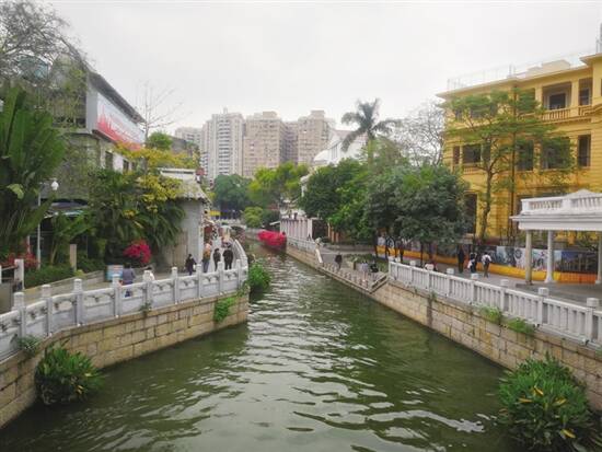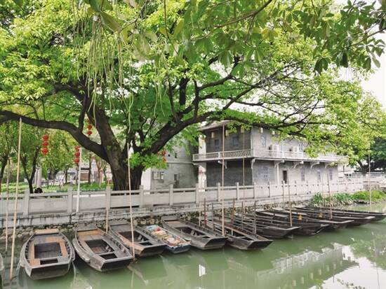 东涌水乡风情街倚水而建,是一条具有岭南建筑风格特色的步行街。河涌两侧是典型“青砖黛瓦”的房屋,街道以旧麻石铺建,形成独特的“青墙、黛瓦、白地”的岭南风格。河涌之上停着慢悠悠的乌篷船,石砌拱桥凌越水面,参天的古榕安静地伫立一隅。小镇远离城市的繁华与喧嚣,是繁华都市圈里难得的静谧之所。穿梭其间,时间的流淌仿佛都慢了下来,让人忘却外界的烦扰。