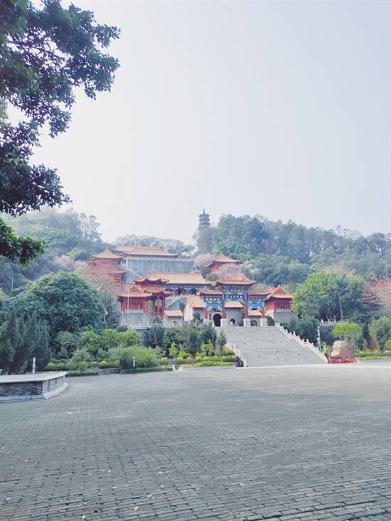 南沙天后宫坐落于南沙区大角山东南麓,建筑依山势层叠而上,面朝烟波浩渺的伶仃洋,依山傍水,气势恢弘。其前身是明代南沙鹿颈村天妃庙,清乾隆年间经修复后定名为元君古庙,在1940年代抗战时期被炸毁,1996年在霍英东的捐款资助下完成重建,最终成为如今的天后宫。