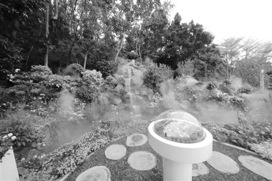 东莞园“智能控制台”伸手触摸可听见鸟语叽叽,展现云雾缭绕的景象。