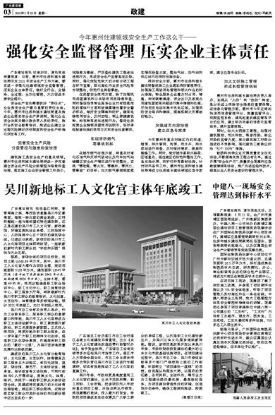 广东建设报讯 通讯员赵义珍、王璙摄影报道:3月17日,由广州市黄埔区国资局组织、广州高新区集团承办、中建八局一公司协办的黄埔区属国企建设项目工地管理现场观摩活动在广州国际生物医药创新中心项目举行。黄埔区应急管理局副局长刘文华、住房和城乡建设局副局长马国东、国资局副局长赵瑞元,以及区属国企安全生产分管领导等到场观摩交流。