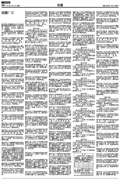 遗失声明 广州市新基工业设备技术有限公司天河分公司营业执照正副本遗失,注册号:4401012028272声明作废。