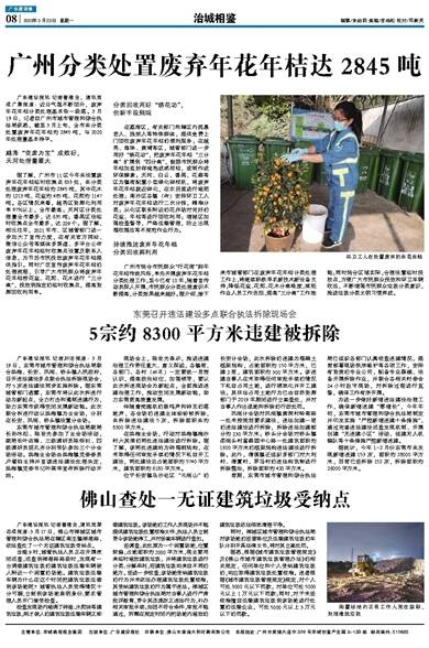 广东建设报讯 记者誉建业、通讯员成广聚报道:近日气温不断回升,废弃年花年桔分类处理基本告一段落。3月19日,记者自广州市城市管理和综合执法局获悉,截至3月上旬,全市共分类处置废弃年花年桔约2845吨,与2020年处理量基本持平。