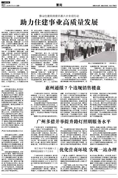 广东建设报讯 记者廖惠康报道:近日,记者从广州市住建局获悉,广州住建部门紧密结合党史学习教育和“我为群众办实事”实践活动,强化责任、细化管理,提升路灯照明服务水平,组织市区两级相关部门和单位全面摸查道路照明情况。今年上半年共摸排路段2443条,累计加装路灯6343盏,修复路灯7253盏,重点加大背街小巷的路灯修复力度,点亮市民安全出行最后100米。