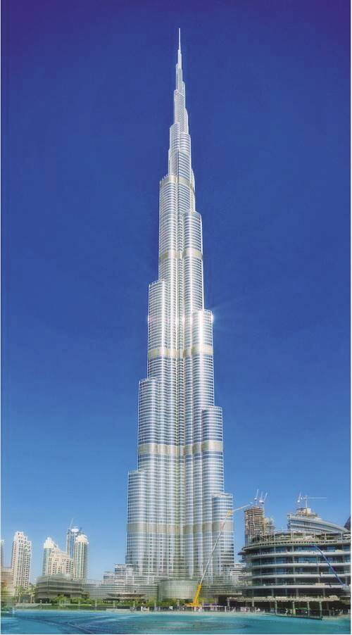 迪拜哈利法塔,总高度828米。其建筑结构设计采用了创新性的多种结构复合构建的全新结构体系,其下部为混凝土结构,上部采用钢结构。从-30~601米为钢筋混凝土结构,从601~768米为钢结构,768~828米为钢桅杆。