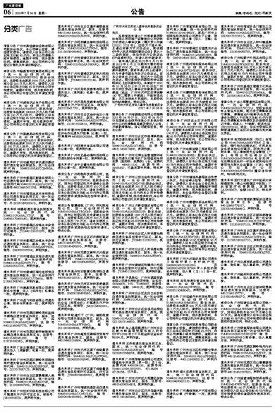 遗失声明 广州淼飞科技有限公司遗失公章、财务专用章各一枚,现声明作废。