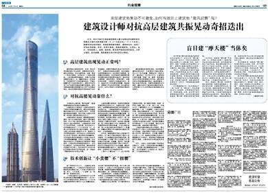 近日,深圳市福田区高层建筑赛格大厦出现晃动原因最终被专家确定为桅杆风致涡激共振(见《广东建设报》7月16日报道)。随着我国各地的高层、超高层建筑越来越多,建筑物安全一直是广受热议的话题。其实,我国对高层、超高层建筑物,从选址、设计、审批到施工、监理、验收等,都有很严格的标准和规范。为防止摆动、抗风减震,高层建筑在设计时也是各出奇招。