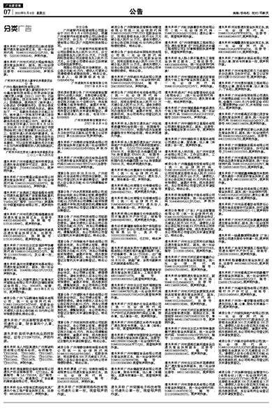 遗失声明 陈碧霞遗失营业执照正、副本,注册号:440104601074369,现声明作废。
