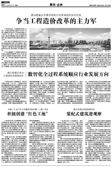 近日,佛山市工程造价改革工作小组技术研究部有关负责人对记者表示,佛山将全面贯彻住房城乡建设部和省住房城乡建设厅工程造价改革决策部署和造价改革试点任务,争当实施广东方案的主力军。