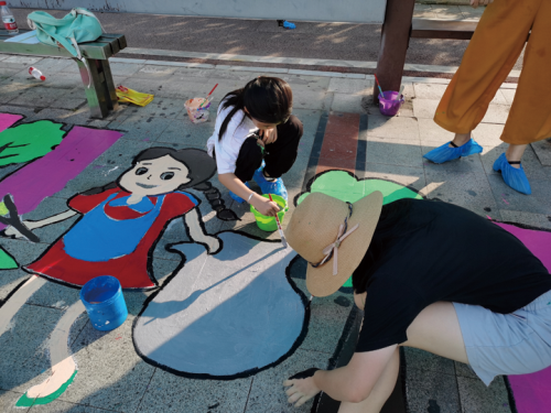 为进一步加强居民的垃圾分类意识,东城城管分局结合城市管理精细化示范街创建行动,“井”上添花活动以各种卡通图案配以文字的形式在街头井盖上涂鸦进行宣传。涂鸦活动从设计、构图,到勾勒图案、填充颜色等环节都在专业老师带领下,由参与人员自主完成。东城城管人员现场协助亲子家庭,指导他们更快更好地完成“井”上添花作品,创作一个属于自己的小井盖。