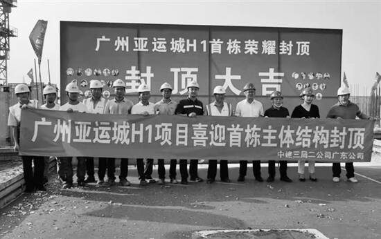 广东建设报讯 记者誉建业、通讯员莫若报道:9月18日下午,经过精心的规划与设计,在项目公司、各施工单位的艰苦奋战之下,由中建三局二公司广东公司承建的广州亚运城H地块一标段首栋6#楼主体结构顺利封顶。来自业主单位、监理单位、总包单位等共60余人参加本次封顶庆典。