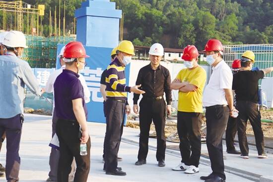 项目总经理杨清平(前右三)陪同领导检查安全生产工作