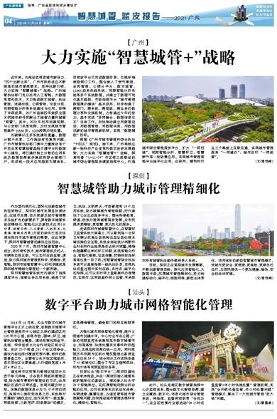 2020年7月,深圳市城管智慧中心成立,依托前沿技术,城市管理涉及的人、车辆等实现互联,可以实时在线监管、调度,助力深圳城市管理更科学、更精细、更智能。深圳市城管智慧中心的初步建成是深圳城市精细化管理的一个新突破。